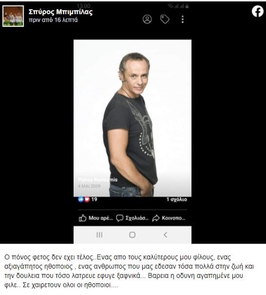 Μπιμπιλασ - Θλίψη στον καλλιτεχνικό χώρο - Έφυγε από τη ζωή ο ηθοποιός ... : Για το πλήθος καταγγελιών περί παρενοχλήσεων στον καλλιτεχνικό χώρο μίλησε ο πρόεδρος του σωματείου ελλήνων ηθοποιών, σπύρος μπιμπίλας.. Ανακοίνωσε πως σταματάει το θέατρο. Στο «πρωινό» μίλησε ο σπύρος μπιμπίλας για τις καταγγελίες ηθοποιών για παρενόχληση και κακοποίηση στον εργασιακό χώρο, οι οποίες πληθαίνουν. Στη δικαιοσύνη όσοι έκαναν αξιόποινα πράγματα. Ο σπύρος μπιμπίλας (26 ιανουαρίου 1956, πειραιάς) είναι έλληνας ηθοποιός του θεάτρου, του κινηματογράφου, της τηλεόρασης και ηθοποιός φωνής. Έχουμε καταγγελίες κάθε είδους βίας για 10 άνδρες.
